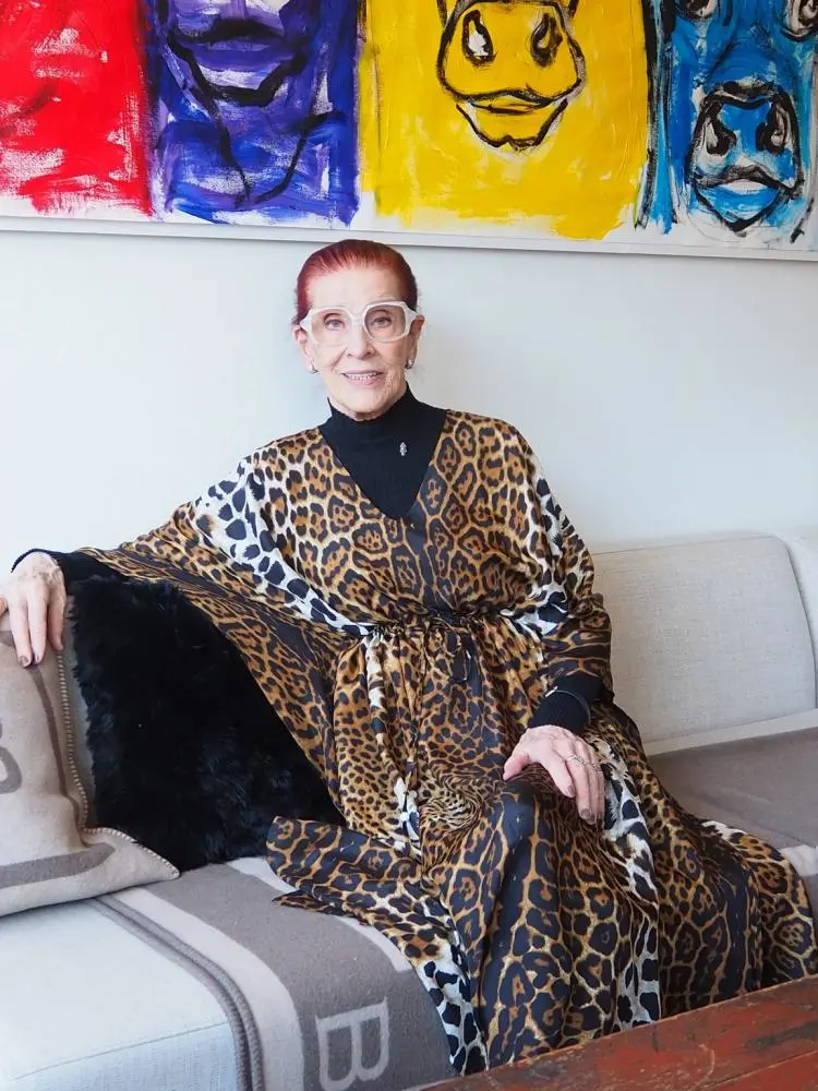 Samulinin tyylikkääseen kaupunkiasuntoon saapuessamme meitä odottaa kahvitarjoilut itse leivottujen kanelipullien kera. Samulin ottaa meidät vastaan pukeutuneena Balmuirin Palma-silkkikaftaaniin, jonka hän on kerrostanut mustan poolopaidan päälle. Jossain vaiheessa vierailuamme myös punainen Monaco-panamahattu ilmaantuu hänen päähänsä, tuoden asuun viimeistellyn väriyksityiskohdan uskollisesti Samulinin värejä ja printtejä kaihtamattomalle tyylille.